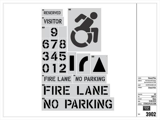 This kit is for the new striping contractors. This included a 42" Arrow (#1018), a 39" handicap (#1207), a 12" NO PARKING (#2128), a 12" FIRE LANE ...