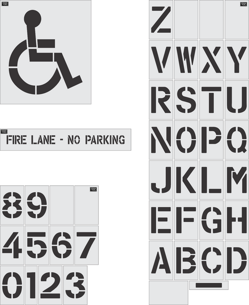Premium Stencil Kit - 75 PC Parking Lot Pavement Marking Stencil Kit